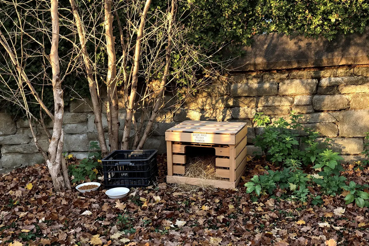 Mettez la nourriture dans une gamelle protégée de la pluie, proche de leur abri. Et pour empêcher les chats de venir se servir, placez la gamelle dans une caisse avec une petite ouverture, ou utilisez une station de nourrissage couverte.