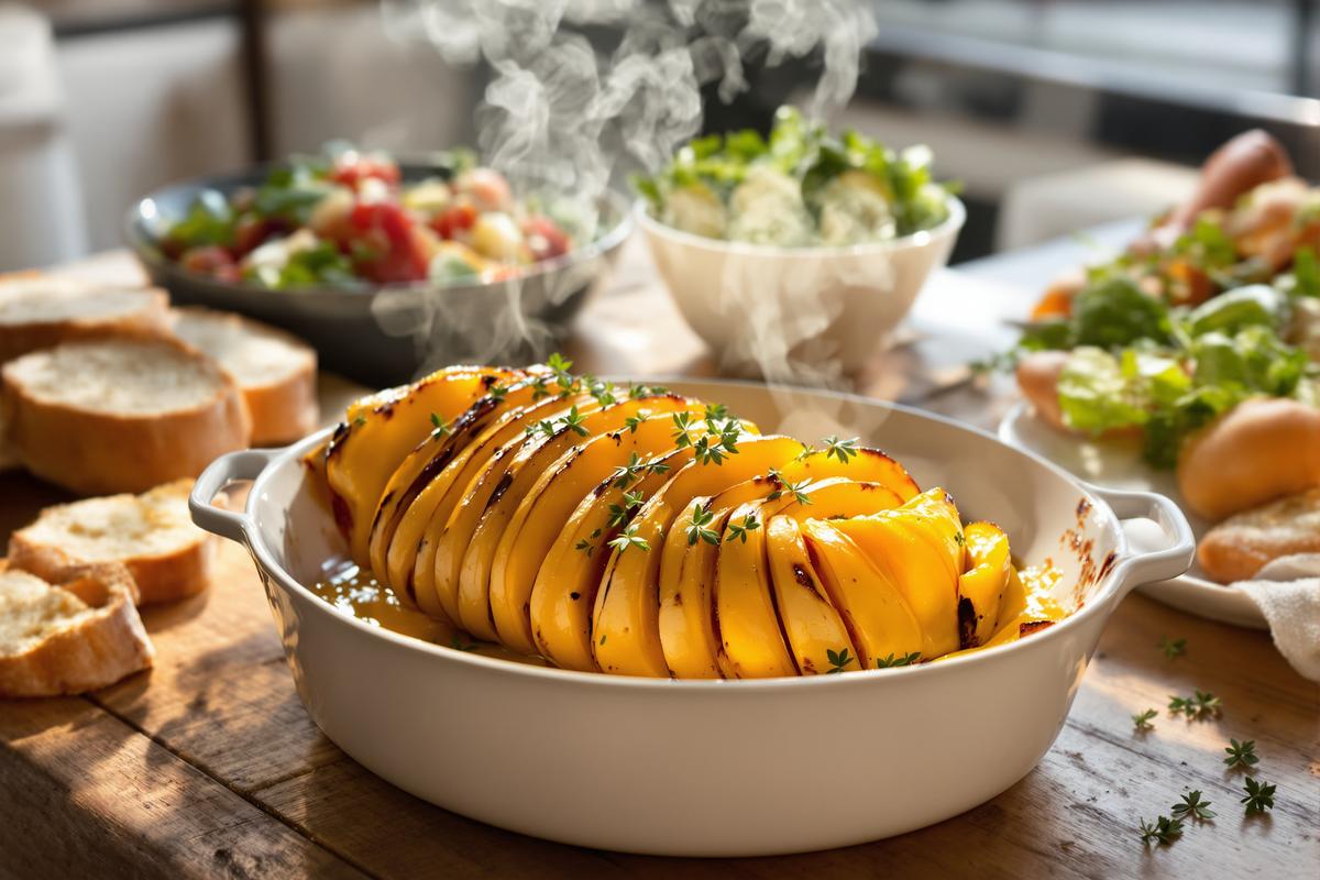 Envie d’une recette réconfortante, gourmande et sans les tracas de l’appareil à raclette ? Cette version hivernale revisite un classique adoré : fromage fondant, courge rôtie et parfum de thym. Pas besoin de poêlon pour créer une ambiance chaleureuse à table. Juste un four et un peu de magie culinaire.