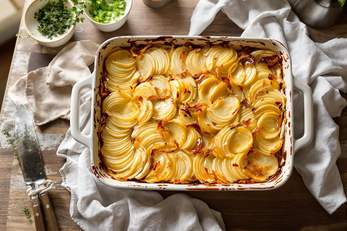 Ce gratin pommes-oignons sans crème fait fondre tout le monde (mieux qu’un dauphinois !)