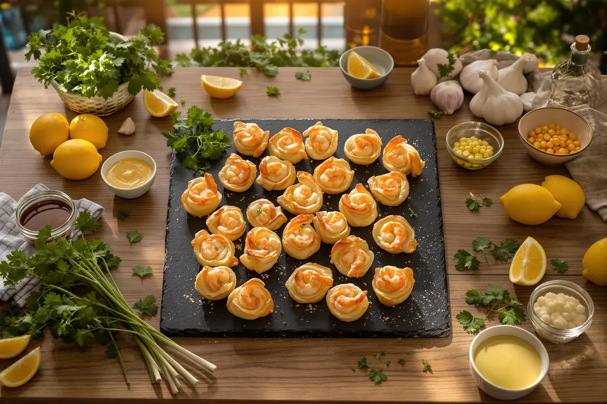 Les crevettes ont ce petit côté festif et raffiné, mais elles restent faciles à cuisiner. Associées à une pâte feuilletée dorée et à une farce parfumée, elles deviennent l’ingrédient vedette d’un apéritif léger, chic et gourmand.