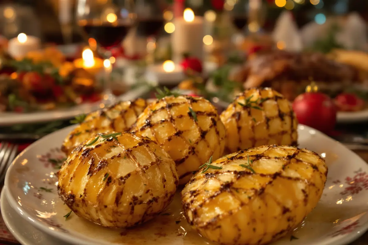 Ces demi-pommes de terre s’adaptent à tous les plats de fête : dinde, chapon, rôti de bœuf, gigot ou même pavé de saumon.