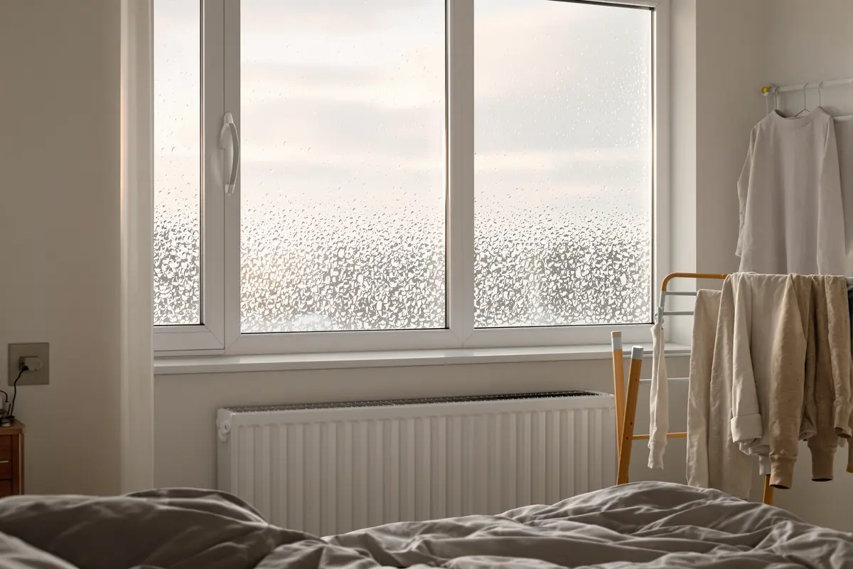 Un chauffage totalement coupé la nuit favorise les écarts de température, ce qui crée davantage de buée au réveil. L’idéal ? Ne jamais tomber sous les 16 à 17°C dans les chambres, même la nuit.