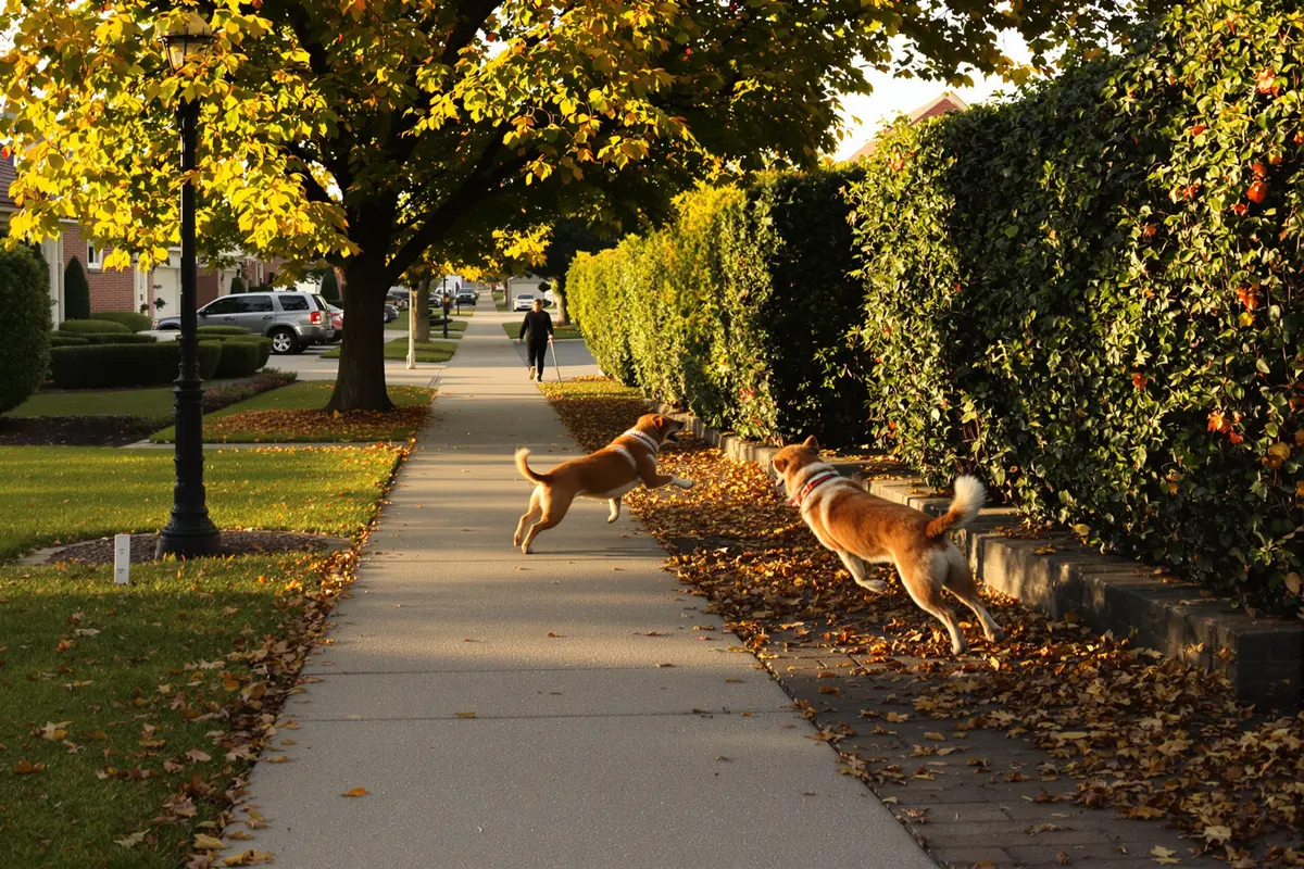 Alors que nous passions devant une maison que nous connaissions bien, un bruit sourd a retenti. Avant même que je ne réalise ce qui se passait, un chien est sorti en trombe de derrière une haie, sans laisse, sans aucun contrôle.