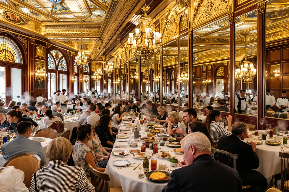Autre point clé : le décor. Dans certains Bouillons historiques comme Chartier ou Julien, vous entrez dans une salle digne d’un roman. Boiseries, miroirs géants, verrières, moulures dorées… Tout évoque la Belle Époque.
