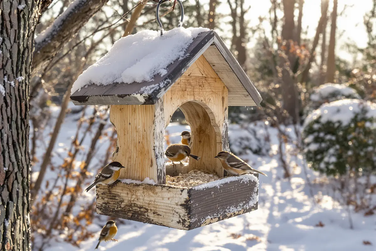 En hiver, les points d’eau gèlent souvent, et les oiseaux peinent à boire. Installez un petit récipient en caoutchouc ou avec un flotteur pour éviter le gel. Changez l’eau régulièrement — c’est tout aussi essentiel que la nourriture !